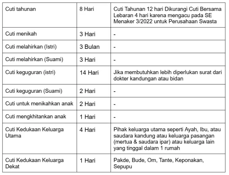 - Cuti : Diberikan untuk kebutuhan pribadi seperti urusan keluarga, atau keperluan penting lainnya. Pengajuan cuti dilakukan minimal H-7